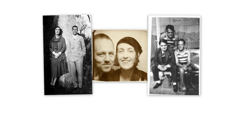 De gauche à droite : Laure de Noailles et Salvador Dali / le couple Noailles / Charles de Noailles avec Georges Auric et Bunuel