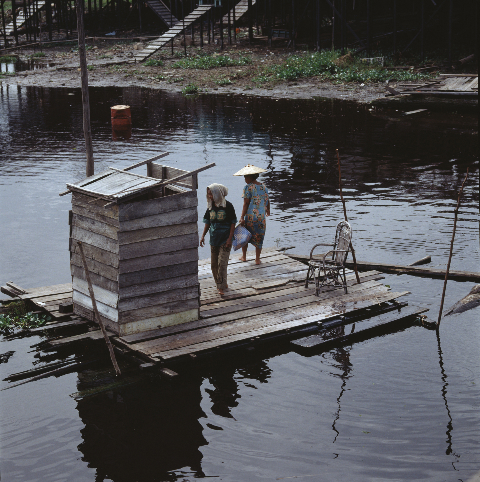 Toilettes flottantes sur le Mékong (Vietnam 1993)/Photo Frédéric Huijbregts/Terre Bleue