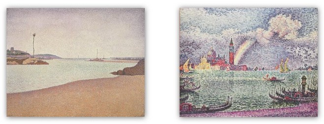 Paul Signac, Saint-Briac-Les Balises (1890) et L’Arc-en-Ciel-Venise (1905) / DR