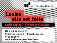 Histoire de mots, Louise, elle est folle est le deuxième texte théâtral de Leslie Kaplan qui collabore avec le collectif des Lucioles et ses créatrices, les actrices et « metteuses en scène » Frédérique Loliée et Elise Vigier depuis près d’une quinzaine d’années. Comme le texte précédent, Toute ma vie j’ai été une femme (1), il est né d’une élaboration collective faite d’ « allers-retours entre l’écriture, la lecture et le travail de plateau », explique l’auteure. D’où la qualité et la force du dialogue entre ces deux femmes sur la scène.