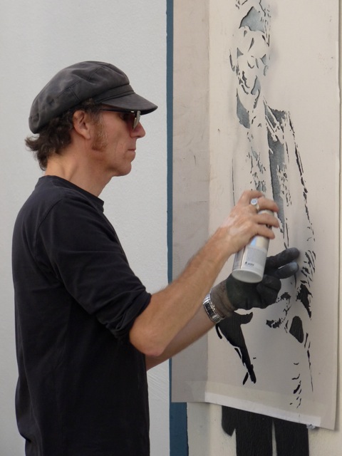 Jef aérosol au pochoir/ photo Hervé Photograff