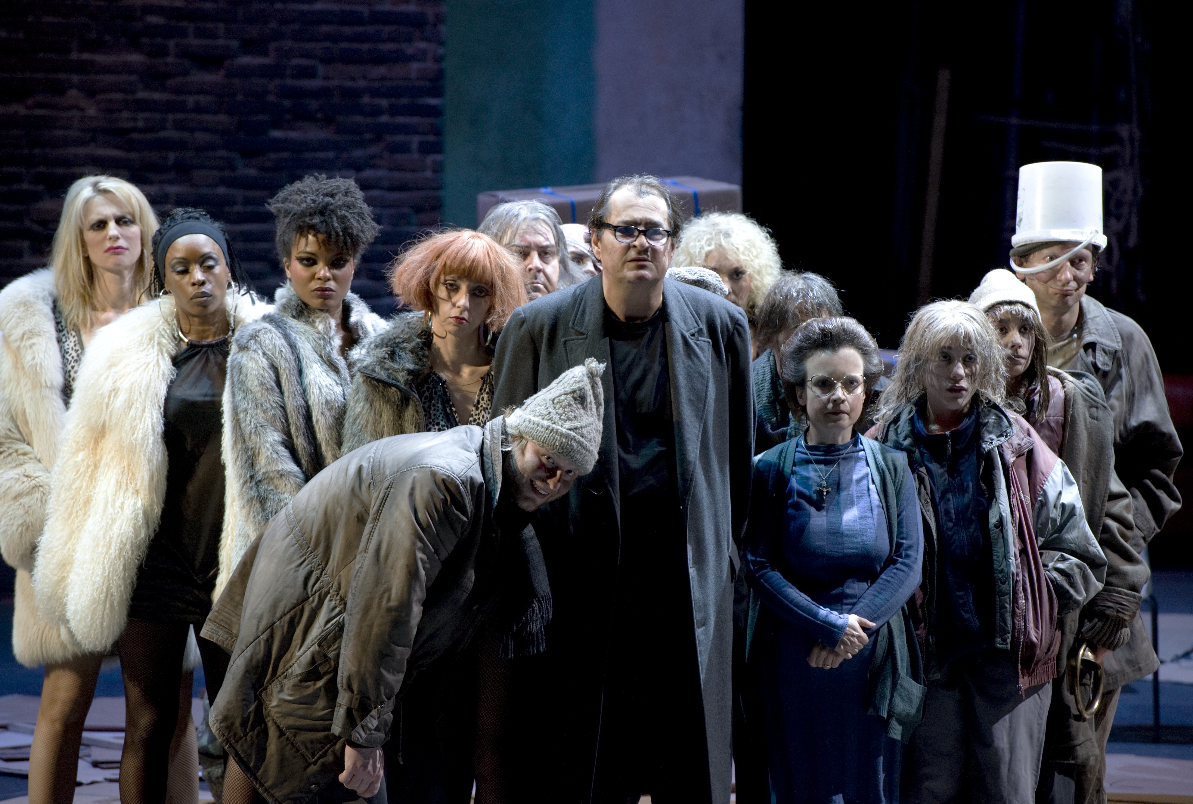 Au centre Jonathan Peachum(Bruno Raffaelli) avec à sa gauche Celia Peachum (Véronique Vella)/ Photo Brigitte Enguérand