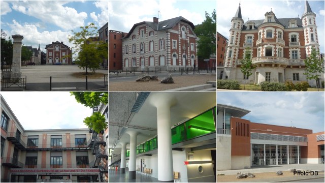 En haut, de gauche à droite : l'entrée du site, ancien bâtiment réhabilité en logements, le "château" / en bas de gauche à droite : l'Ecole nationale supérieure de la Nature et du Paysage, vues extérieur et intérieur - ecole d'ingénieurs du Val de Loire / Photos DB