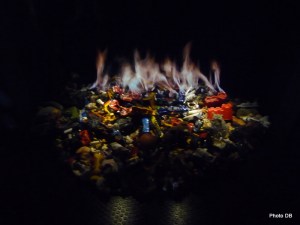 Quant aux « grands » ils pourront rester encore quelques instants avec le souvenir de l’œuvre en 3D de Pierrick Sorin sur laquelle s’achève l’exposition. Des jouets se consument sans fin dans une cheminée, tandis que tombe la neige, sur laquelle ne glissera plus Rosebud , la fameuse luge qui hante Citizen Kane avant de brûler, elle aussi, dans l’extrait du film d’Orson Welles que Pierrick Sorin a choisi … (2)