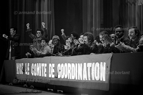 Comité de Coordination des foyers Sonaccotra en greve, en 1977 à la Mutualité / DR