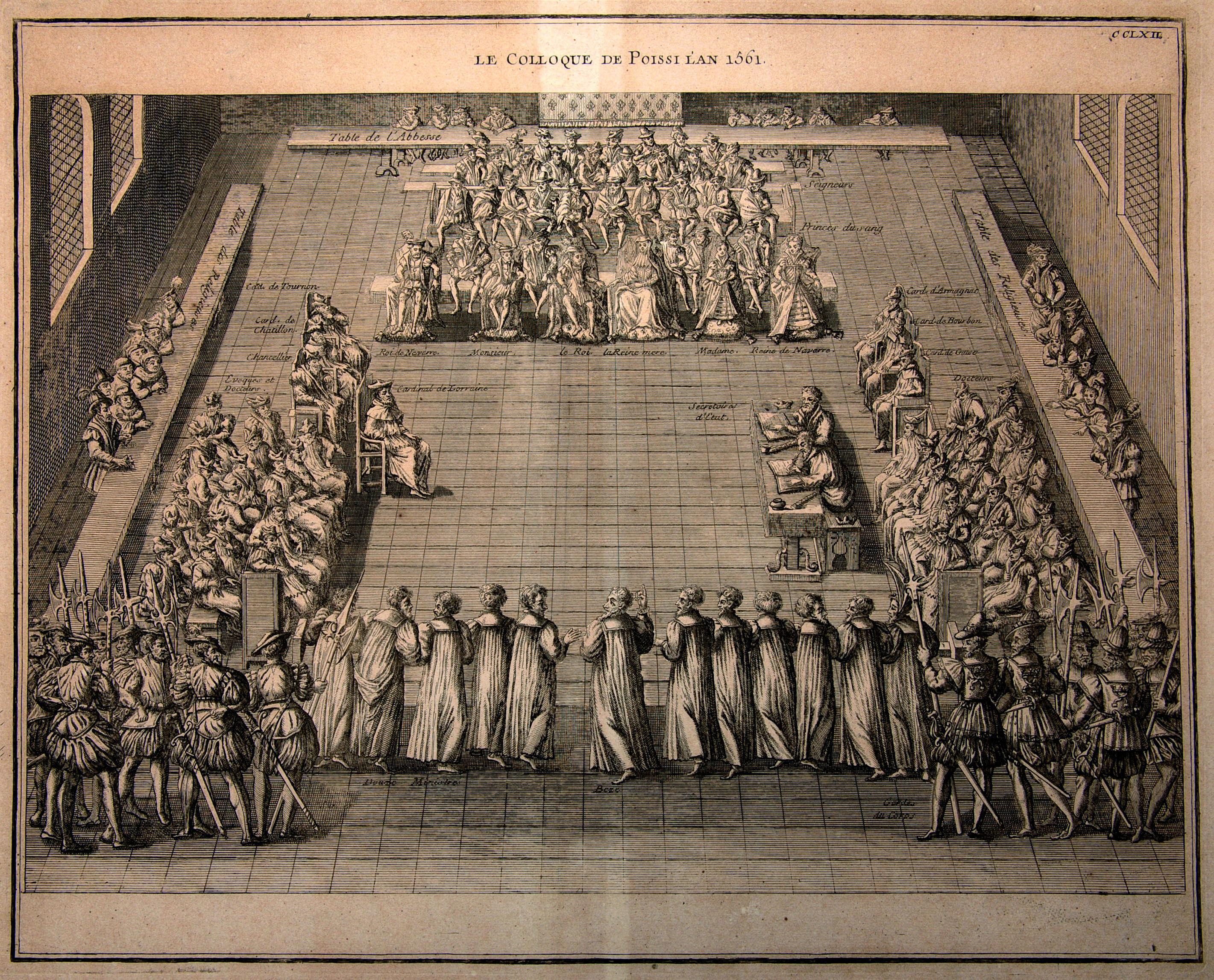 Colloque de Poissy, gravure d’après Tortorel et Perrissin, début XVIIe siècle / coll. MAH Poissy / R.P. Rivière