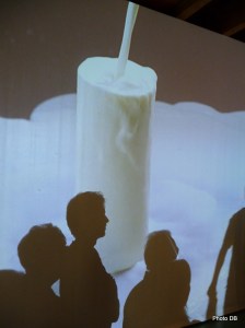 Pour sa nouvelle exposition, le Lab’Bel – Laboratoire artistique du Groupe Bel – a sollicité des artistes sur le thème du lait. Au Lait ! Quand l’art déborde rassemble jusqu’au 23 septembre 2012 à La Maison de la Vache qui rit à Lons-le-Saunier une vingtaine d’œuvres d’artistes émergents ou confirmés se saisissant de cette matière ambivalente et chargée d’imaginaire qu’est le lait nourricier, dans ses débordements et métamorphoses. On pourra en profiter pour visiter l’exposition permanente sur l’histoire du célèbre fromage né en 1921 et aussi pousser jusqu’au musée des Beaux-Arts de Dôle qui abrite la toute jeune et intéressante collection d’art contemporain de Lab’Bel…