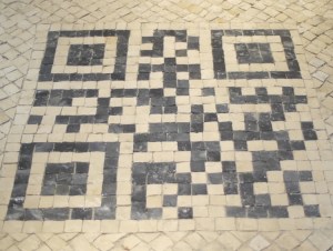 Les fameux petits pavés noir et blancs de calcaire et de basalte des rues lisboètes, signature de la ville, se transforment en QR Code dans le quartier du Chiado et auprès des grands monuments…