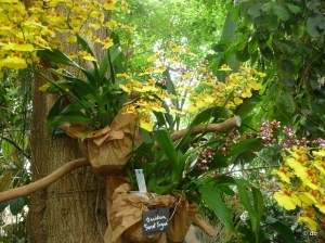 Si les orchidées ne sont pas présentes de façon permanente dans la serre du Muséum, on nous fait découvrir un Oncidium, sans fleurs, qui a poussé sur un arbre… Et l’on retourne sur nos pas pour voir à quoi ressemblent ses fleurs, et découvrir le jaune d’or d’un Oncidium « sweet sugar ». On ne se lasse pas de déambuler, apercevant à chaque détour et retour une espèce qu’on n’avait pas encore remarquée, dans le foisonnement de ces Mille et une orchidées…