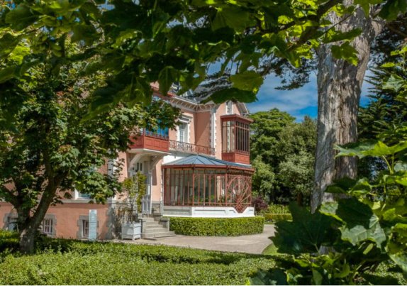 Bien sûr, on choisira si possible d’accéder au musée par le bord de mer. Car l’effort qu’exige l’escalier creusé au flanc de la falaise est vite récompensé par la vue sur la baie qu’on découvre progressivement et, une fois au sommet, si le temps est clair, on pourra même peut-être apercevoir la silhouette du Mont Saint-Michel. On débouche dans le jardin par une petite allée bordée de généreux hortensias rose vif, puis se dévoile la villa entre les arbres, avec son crépis rose pâle sur lequel se détache l’ocre des ferrures 1900 de sa véranda et de ses bow-windows.