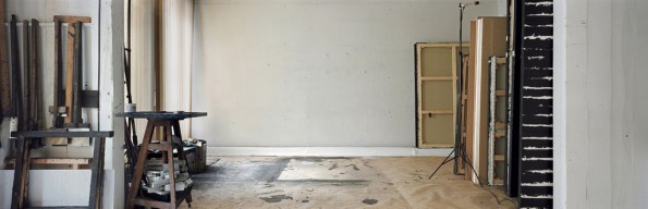 Cinq thèmes sont abordées : l’atelier, l’esquisse et la maquette, le détournement d’objet, la série et la création in situ. L’atelier, c’est l’espace et aussi le temps de la création, ce qu’illustre la série photographique de Gautier Deblonde. Celui-ci, dans une démarche relevant à la fois du reportage, du documentaire et de la création plastique, a choisi de faire « le portrait des artistes au travers de leur lieu de travail sans leur présence », explique le photographe. La réalisation de cette série s’est étalée de 1994 à 2014, années pendant lesquelles il a rencontré 200 artistes et photographié 130 ateliers, le plus souvent à l’heure du déjeuner, en utilisant une chambre photographique panoramique à 1,50 mètre du sol, à la lumière de l’atelier avec un temps de pause assez long, pour « faire un paysage de la création ».