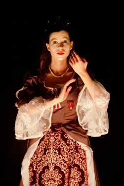 Charles Di Meglio, le directeur artistique de la Compagnie Oghma, propose une version “intime et concentrée” de la tragédie. Seuls les trois personnages principaux — Bérénice, Titus et Antiochus —- se retrouvent sur scène durant une heure dix. Disons-le d’emblée : les toute premières minutes sont déroutantes. L’oreille doit se familiariser avec ce français du XVIIe siècle – où les sons « oi » sont prononcés « ouè », ou les « e » muets ne le sont plus – , un phrasé particulier et un texte plus déclamé que joué. Mais très vite, le sens s’impose. Et avec lui surgit l’émotion, d’autant plus forte qu’elle est contenue. Le jeu des acteurs étant tout entier dans la retenue, la gestuelle maîtrisée, c’est dans le regard et le visage que se concentrent l’expression et l’intensité des sentiments.