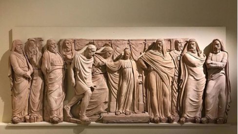Bien sûr, Jeanne d’Arc se devait d’être présente : elle l’est dans la vaste entrée du musée avec l’immense toile de Jean-Jacques Scherrer, Jeanne d’Arc victorieuse des Anglais entre à Orléans, présentée au Salon de 1887. À notre arrivée, un groupe de jeunes enfants étaient assis à ses pieds, écoutant sagement les explications de leur accompagnatrice …