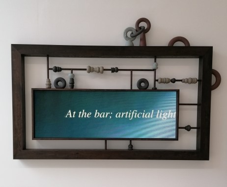 Ascendant idéal, tel est l’intitulé du « chapitre » écrit par Elsa Vettier. Le mot ascendant , s’il peut faire penser au domaine de l’astrologie, renvoie ici à l’influence qu’une personne peut avoir sur une autre, au déséquilibre qui gouverne nos interactions. L’installation Parfums de pauvres, de Fabienne Audéoud illustre bien ce propos : placées côte à côte, les bouteilles de parfum, choisies pour leur prix inférieur à cinq euros, égrènent leurs noms évocateurs : Querelle, Predator, My manager, Lust for men, etc… Quant au lapidaire Sorry, you are not on the list, imprimé en noir au centre d’un grand poster blanc (Eva Barto) il se suffit à lui-même.