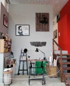 L’atelier de Miss.Tic reconstitué à l’entrée de l’exposition . Photo db