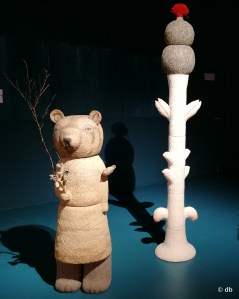 Les arbres, l’artiste d’origine coréenne Yun-Jung Song, a choisi de les modeler, ainsi que d’autres plantes et des animaux. La nature et le monde animal – réels ou imaginaires – sont les principales sources d’inspiration de ses céramiques. L’artiste puise dans les mythes et les récits de son pays natal pour explorer ce qui relie l’humain au vivant, d’où nombre de sculptures hybrides. Il se dégage des œuvres exposées une sorte de douceur et de mystère, plutôt bienveillant.