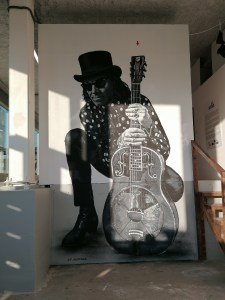 Ce que reflète la scénographie de l’exposition Interstices, pensée pour donner au son autant d’importance qu’à l’image. Chaque toile est associée à un QR code permettant d’écouter l’une des chansons de l’album. Le visiteur compose ainsi son propre parcours, crée ses propres correspondances entre ce qu’il voit et ce qu’il entend. Une salle dédiée présente reportages et documentaires sur l’artiste. Un espace d’écoute propose plusieurs postes équipés de casques pour une immersion individuelle dans l’album. Mais le visiteur est invité à venir avec un casque et son smartphone pour vivre cette expérience en toute liberté, de façon plus intime, réceptif à ce que l’artiste livre de profondément personnel, dans ses tableaux et ses chansons. (3)
