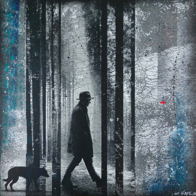 Une cinquantaine de toiles qui témoignent d’une évolution sensible dans le travail de Jef Aérosol. Toujours figuratives, les œuvres surprennent, avec des cadrages et des sujets inattendus, où l’on sent une sorte d’apaisement. Tandis que par le jeu des superpositions et des découpes propres au pochoir – un véritable travail d’orfèvre -, l’artiste crée des textures et des profondeurs nouvelles : « Je suis rentré dans les interstices des pochoirs, pour que ça corresponde à ce que j’attendais », dit-il. Parallèlement il composait, écrivait, enregistrait un album de quatorze chansons. « Les toiles et les chansons se sont nourries mutuellement mais elles restent autonomes, chacune racontant sa propre histoire », souligne Mathilde Jourdain.(3)