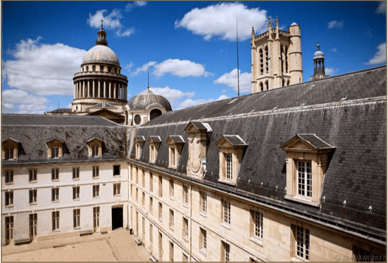 Depuis la cour de l’établissement : au centre la coupole, et à sa gauche le Panthéon © Lycée Henri-IV