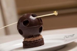 Pour déguster le French Brigadeiro, il faut donc briser la sphère alvéolée qui l’entoure, posée sur un socle de sablé au chocolat à la fleur de sel. Le tout servi avec un surprenant granité de guarana, dont la fraîcheur acidulée vient opportunément soulager le palais. Car le Brigadeiro, même mâtiné de french touch, reste assez consistant !