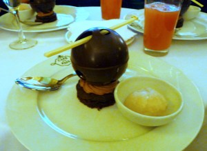 Ces pâtisseries fashion sont « à chaque fois un challenge », pour Christophe Raoux, le chef du Café de la Paix, et son chef pâtissier Dominique Costa. « A chaque fois on se creuse la tête et on essaie d’être le plus proche possible du créateur. Par exemple, ce dessert là (le French Brigadeiro) est à la fois très recherché et très épuré, explique Dominique Costa. On est resté sur le concept du ballon de foot ». Pour un représentant du pays par excellence du futebol, hôte de la Coupe du Monde en 2014, il était loqique que quelque chose ressemblant à un ballon de foot soit présent dans l’assiette du dessert…