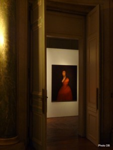 Des rouges passion qui tranchent sur l’atonie des visages et éclatent tout particulièrement avec l’accrochage des tableaux dans les espaces parisiens du Centre culturel Calouste Gulbenkian. Notamment au rez-de-chaussée de ce vaste hôtel particulier (1) où l’on peut apercevoir les œuvres d’une salle à l’autre, comme enchâssées dans les boiseries et dorures des portes.