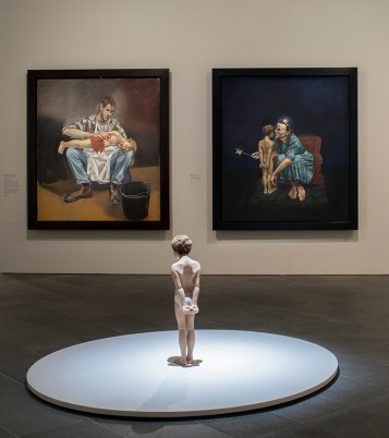 Par ailleurs, dans son atelier de Londres, Paula Rego façonne et met en scène mannequins, poupées et masques, crée des personnages ou animaux qu’elle transforme et travestit, les installant dans des sortes de saynètes. Elle s’entoure de sculpteurs comme Cathie Pilkington ou Ron Mueck, son gendre, dont on peut voir le Pinocchio dans l’exposition.